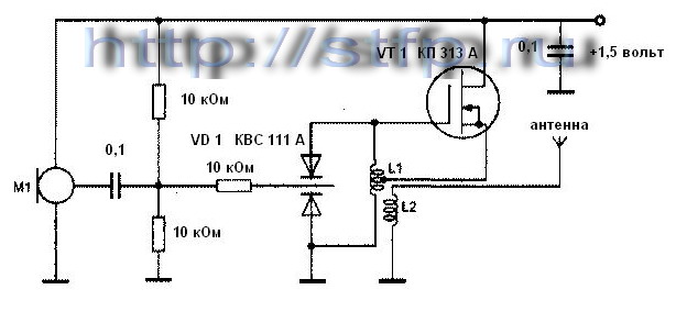 Радиомикрофон на полевом транзисторе с низким потреблением для диапазона 80-100 мГц.