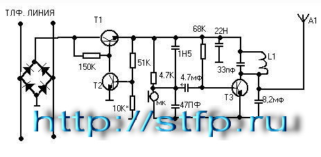Основная настройка сводится к подбору резистора R 3. Возможно его уменьшение до номинала в 1 кОм. Данный номинал подбирается исходя из соотношения выходнои мощности и напряжением на линии. Во избежание падения напряжения и рассекречиванию вашего жучка.