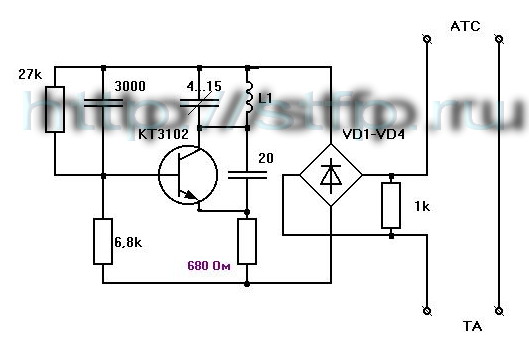 Данный телефонный ретранслятор не нуждается в антенне, так как антенной является телефонная пара.